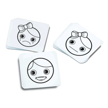 Some children with brain damage-related vision loss may achieve near normal results in routine vision tests (large visual field and normal or near normal visual acuity), but cannot interpret facial expressions or recognize people's faces. The HEIDI® Expressions test game improves early evaluation of vision for communication. 18 cards per set. Cards are 4" x 4" (10.16 cm x 10.16 cm).