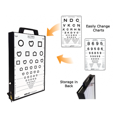 LED lights provides uniform illumination across the entire testing surface. Automatically adjusts to incoming power of 100 to 240 VAC. Easily store your charts in handy compartment on back of ESV1200.