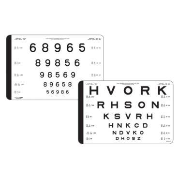 Adult Distance Vision Viewer is a proportionally spaced acuity card for the the Self Illuminated Viewer. It primarily tests distance vision by identifying the different numbers and/or letters from 10ft/3m away. It is illuminated by the light located in the self-illuminating cabinet. Individual cards are available in LEA NUMBERS® or Sloan Letters optotypes. Line sizes range from 20/63 to 20/20 (6/19 to 6/6) equivalent.
