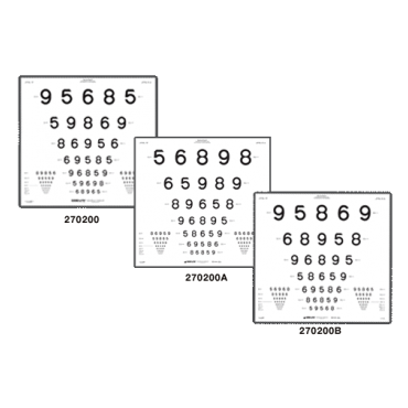 Available in three different versions of mixed/scrambled order when repetitive testing is involved. These charts fit ESV3000 Standardized ETDRS illuminated cabinet.