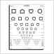 Proportionally spaced lines; line sizes range from 20/200 to 20/8 (6/60 to 6/2.4) equivalent. 50% spaced rectangle (Massachusetts Visual Acuity Test format) with line sizes from 20/100 to 20/8 (6/30 to 6/2.4) equivalent. Has a hole for hanging the chart on the wall. Includes response key, flash cards, and instructions. 17" x 21" (43 cm x 53.4 cm).