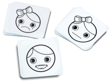 Some children with brain damage-related vision loss may achieve near normal results in routine vision tests (large visual field and normal or near normal visual acuity), but cannot interpret facial expressions or recognize people's faces. The HEIDI® Expressions test game improves early evaluation of vision for communication. 18 cards per set. Cards are 4" x 4" (10.16 cm x 10.16 cm).