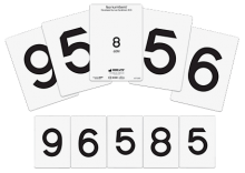 These five LEA NUMBERS® Cards can be used for presentation as single optotypes or arranged in a row as a line test. When the cards are next to each other, the space between the numbers is equal to the width of the symbols. To determine the visual acuity use the following formula: