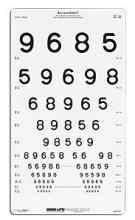 LEA NUMBERS® distance eye chart with proportionally spaced (logMAR) lines; line sizes range from 20/80 to 20/8 (6/24 to 6/2.4) equivalent, 0.25 to 2.50.