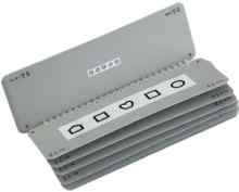 This test is designed for amblyopia screening and testing children who have difficulties when tested with the standard distance charts (#250250 or #250150). The background is gray with the exception of a white rectangle spaced at 50% surrounding each line of symbols. Line sizes from 20/80 to 20/16 (6/24 to 6/4.8) equivalent, 0.25 to 1.25. Includes response key and training cards. Pages are offset for easy flipping. Instructions are printed on the inside cover. 10 pages, 3.25" x 9" (8.25 cm x 22.9 cm).