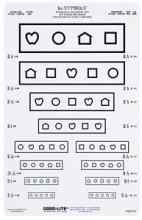 LEA SYMBOLS® Pediatric vision chart with 50% spaced rectangle (Massachusetts Visual Acuity Test format) with line sizes from 20/80 to 20/16 (6/24 to 6/4.8) equivalent. This chart can be used in Good-Lite's illuminated ESV1200 [1], ESV1500 [2], Model A+, Model A cabinet or hung on the wall. Chart Size: 9" x 14", 22.9 cm x 35.6 cm