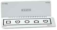 Handheld pediatric vision chart with LEA SYMBOLS® is designed for amblyopia testing or screening. 50% spaced rectangle (Massachusetts Visual Acuity Test format) with line sizes from 20/80 to 20/16 (6/24 to 6/4.8) equivalent. Pages are offset for easy flipping. Includes response key and flash cards. 10 pages, 3.25" x 9" (8.25 cm x 22.9 cm).