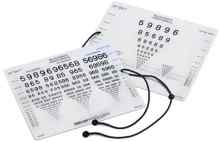 This standardized adult vision assessment is designed to measure visual acuity with a standard line test and with three tighter spaced tests; 50%, 25% and 12.5% which often reveal difficulties in seeing tightly crowded details. Line sizes range from 20/400 to 20/10 (6/120 to 6/3) equivalent, 0.05 to 2.00. Card measures 8" x 10" (20.3 cm x 25.4 cm).