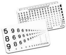 The Runge Near Vision Card with LEA NUMBERS® features a format that is both easier and faster to use for near vision screening. Developed by an Optometrist, this Sloan Letter Near Card mimics reading from left to right. LEA NUMBERS® optotypes on the front of the card contain line sizes ranging from 20/500 to 20/16 (equivalent).
