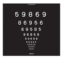 LEA NUMBERS® chart for the Super Pinhole Macula Cabinet with proportionally spaced lines; line sizes range from 20/100 to 20/20 (6/30 to 6/6) equivalent.