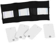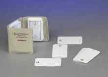 Assess the near visual acuity of 2- and 3-year-old children, or use the cards at any age (older than 2+ years) to train an amblyopic eye. Set contains 3 packs of 16 domino-like cards with a large symbol at one end and a small symbol at the opposite end. Symbol sizes are 3.2M and 0.8M, 2.0M and 0.5M, and 1.25M and 0.3M. Each symbol on the card is printed with its M unit, decimal value, 6 meter and 20 foot equivalency for visual acuity value at 40 cm testing distance. Includes training cards and instructions. Paper cards measure 1.6" x 2.75" (4 cm x 7 cm).