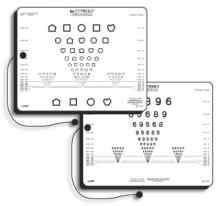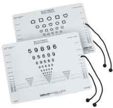 This card combines a LEA SYMBOLS® line test on one side and a LEA NUMBERS® line test on the opposite side. Proportionally-spaced lines from sizes 20/400 to 20/10 (6/120 to 6/3) equivalent. Attached 16-inch (40cm) cord ensures proper assessment distance. Response key printed on test card. Flash cards and instructions included. 8" x 10" (20.3 cm x 25.4 cm). The string and ball ensures that the test is being performed from the correct distance to get the most effective results for the patient.