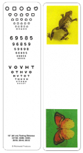 Near point fixation stick with lenticulars on one side and LEA SYMBOLS®, LEA NUMBERS® and HOTV optotypes on the opposite. The lenticular side simulates a caterpillar morphing into a butterfly and a frog jumping. The LEA SYMBOLS®, LEA NUMBERS® and HOTV show proportionally-space lines sizes of 20/100, 20/80, 20/40 and 20/32. Great for maintaining children's attention.