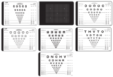 Adult Near Vision proportionally spaced acuity cards for the the Self Illuminated Viewer. This lit up display are individual cards which are available in the following optotypes; LEA SYMBOLS®, LEA NUMBERS®, Sloan Letters, Tumbling E and Amsler Grid. Line sizes range from 20/250 to 20/10 (6/75 to 6/3) equivalent.