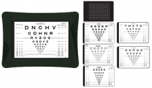 Self Illuminated Near Cards has an LED backlit display that standardizes illumination and illuminates reflections. There is no need to bring over a lamp for the patient to read the card. The light box is well protected in a rubberized sure grip frame and allows for easy change of near vision cards.